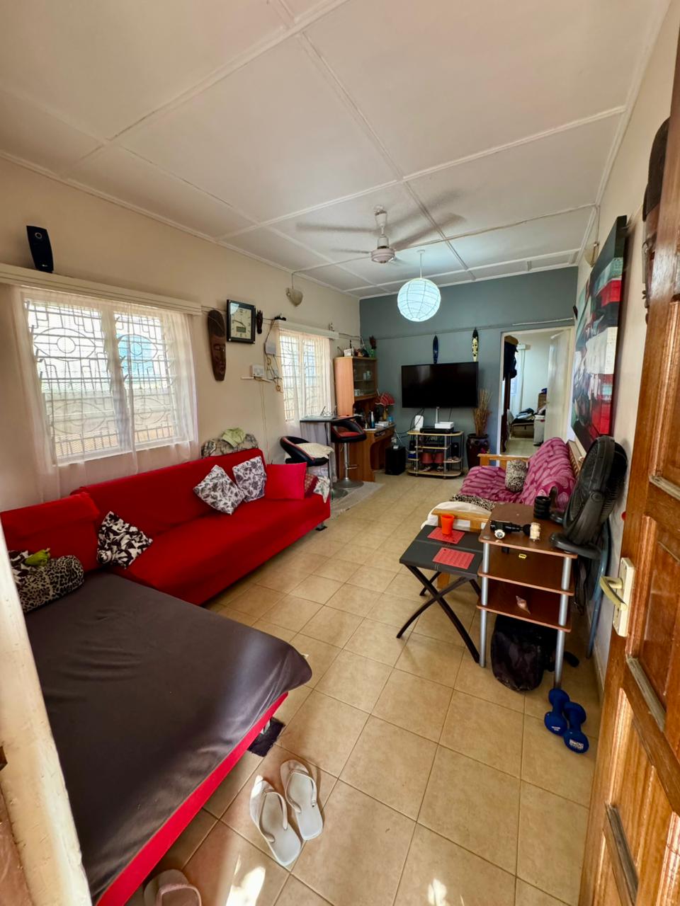The property features a generous living area, a separate kitchen with ample cabinet space, well-sized bedrooms, and a private bathroom. Outside, the home sits within a walled and gated compound with parking space and open yard area, giving you both privacy and convenience.