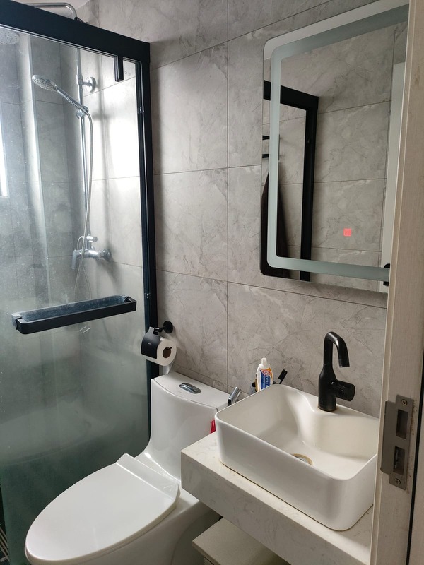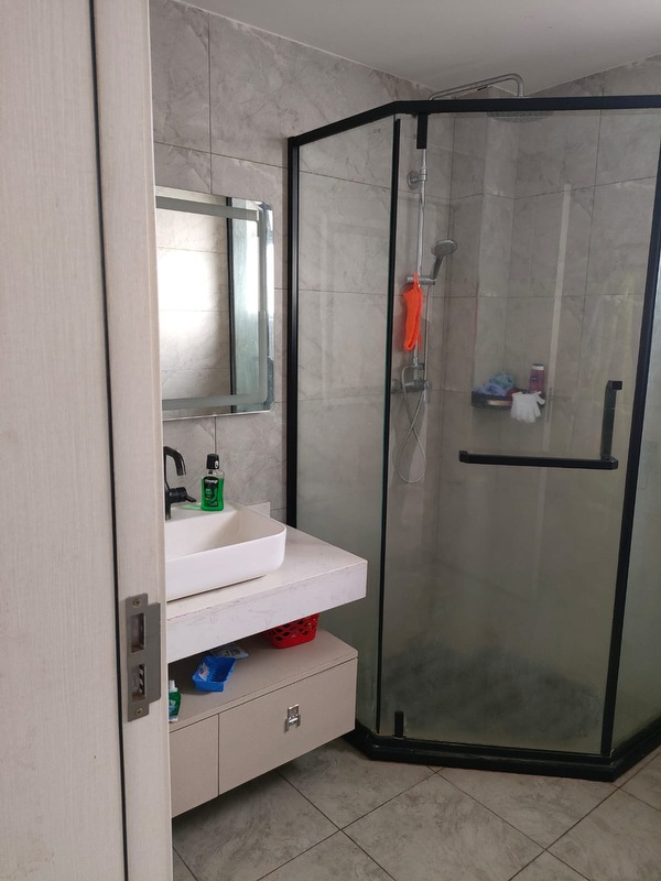 All 3 bedrooms are en-suite with smart mirrors & sensor lighting, an open-plan living area, fully fitted kitchen (hood, glass-top cooker & oven), balcony utility, solar water heating and DSQ with separate entry.